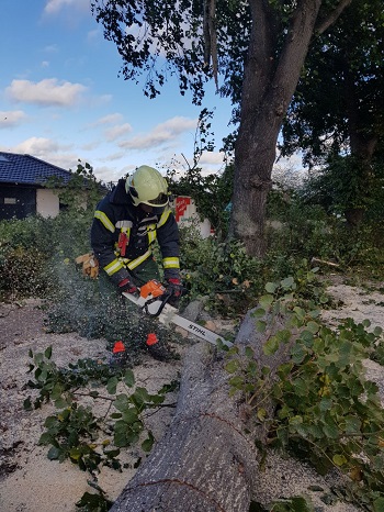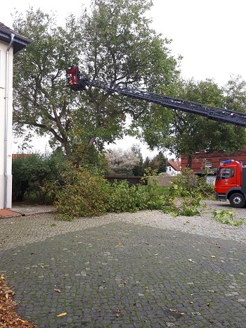 Mit Hilfe der Egelner Drehleiter und einer Bügelsäge wurde