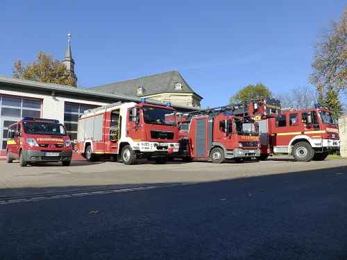 Die Einsatzfahrzeuge vor der Feuerwache